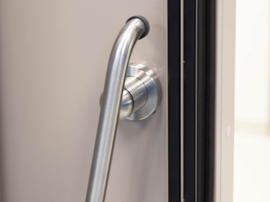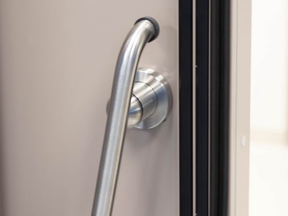 The door core of our record CLEAN K1-A -dB is noise-absorbent and surrounded by rubber seals. Available in sound-proofing stages of 34 dB, 37 dB and 42 dB. The surface can be designed with high-grade steel or freely designable HPL. A combination of the materials is also possible.
