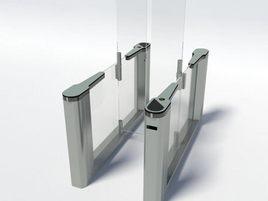 High-speed automatic speedgate with motor-driven swing doors for indoor use.