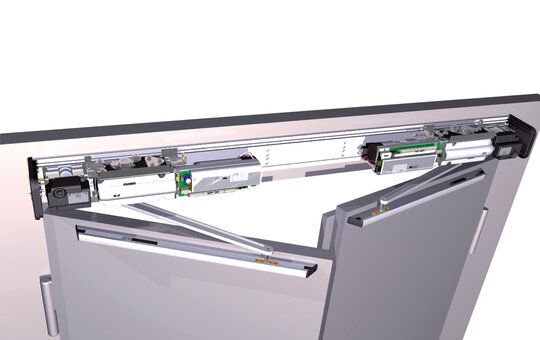 Die vollständig integrierte Antriebslösung für 2-flügelige Feststellanlagen an Brandabschlüssen. Die mechanische Koppelung der beiden Antriebe für Gang- und Standflügel stellt bei Auslösung über eine Brandmeldeanlage und auch bei Netzausfall die korrekte Schliessfolge sicher. Die Schliessfolgeregelung record SFR 127 erfüllt die Anforderungen der Maschinenrichtlinie 2006/42/EG ist allgemein bauaufsichtlich zugelassen vom DIBt, D-Berlin.