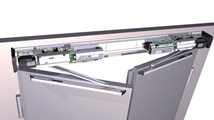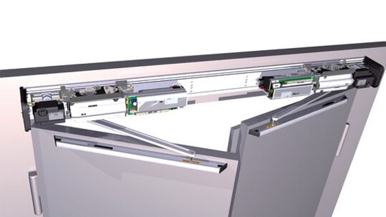 Zintegrowany w obudowie napędów RKZ linkowy dla drzwi pożarowych 2-skrzydłowych. Siłowniki spięte ze sobą w sposób mechaniczny za pośrednictwem SFR 127, zamkną się zawsze we właściwej kolejności zarówno po podaniu sygnału z systemu ochrony pożarowej, jak i w przypadku zaniku zasilania sieciowego.