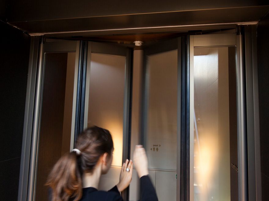 - Door panels open in the direction of escape, enabling users to exit as quickly as possible